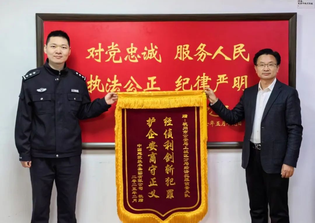 2月27日,中國建技黨委副書記、總經(jīng)理余湘北,黨委副書記、紀委書記李小陽,法務楊建旭一行專程赴杭州市上城區(qū)經(jīng)濟犯罪偵查大隊,向辦案民警代表送錦旗,對經(jīng)偵大隊在偵辦中國建技原浙江分公司總經(jīng)理系列重大犯罪案件中展現(xiàn)的專業(yè)能力表示由衷欽佩,對其高效行動致以誠摯謝意。